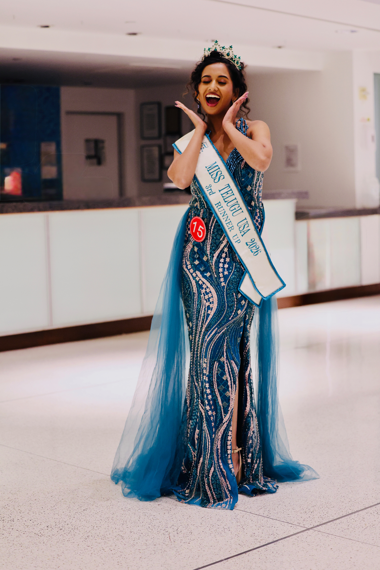 Receiving the crown — Miss Telugu USA 2026, 3rd Runner Up